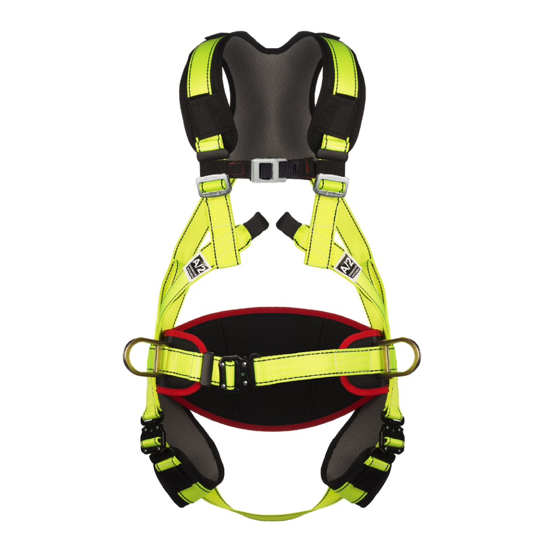 Arnés MIRA 15AC con 2 puntos de enganche anticaídas, uno dorsal y otro pectoral. Hombreras regulables, perneras regulables mediante hebillas de cierre automático, broche pectoral metálico. Con acolchados de confort desmontables en hombreras y perneras + Cinturón de sujeción MIRA 10F.4 con 2 puntos de enganche de sujeción laterales de acero. Regulación en cintura mediante hebilla de cierre automático y acolchado de confort. Con bolsa porta-equipos.