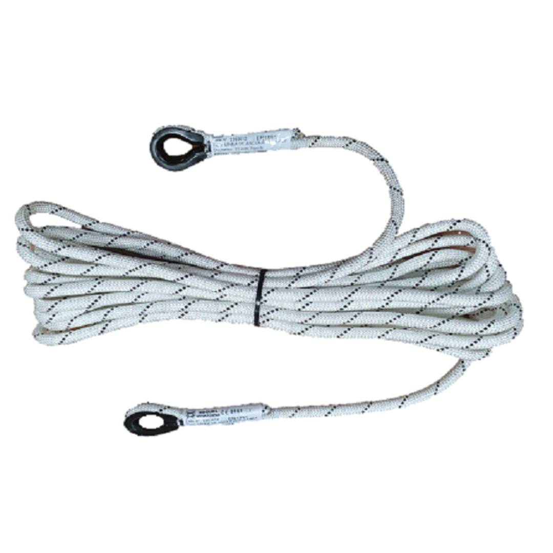 Cuerda trenzada semiestática de 11 mm. Tramo de 10 m. con guardacabos.
