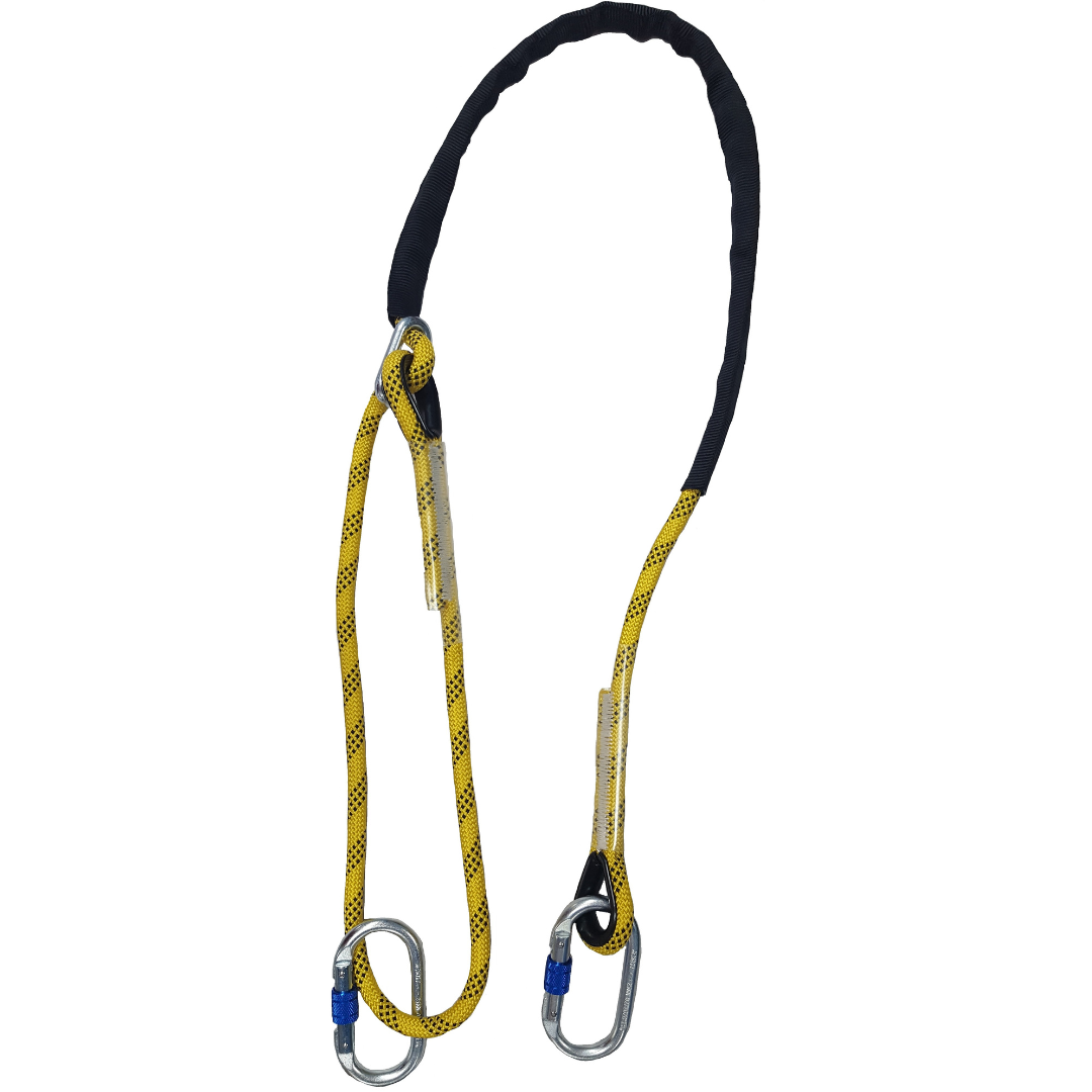 Elemento de amarre anticaídas y de sujeción regulable hasta 1,80 metros MIRA JE3007B-2 , fabricado en cuerda trenzada semiestática de 11 mm con 2 mosquetones de acero con cierre de virola de rosca.